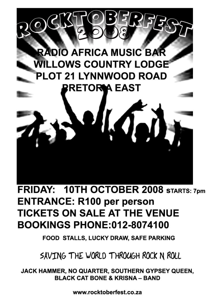 The year 2009 sees Jack Hammer, one of the country’s finest and longest serving rock bands, celebrate 25 years pounding the Rock ‘n Roll ‘Highway’ in South Africa. The “JACK HAMMER JAMBOREE” is a music festival to take place at Cafe Barcelona in Elardus Park on Saturday 18th July 2009 to celebrate ‘a quarter of a century’ for this incredible outfit!
